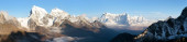 Wieczorem panoramiczny pejzaż widok z Gokyo Ri do montażu Arakam Tse, Cholatse, Kangtega i Thamserku szczyt w okolicy Everest - park narodowy Sagarmatha, Dolina Khumbu, górach Himalajach Solukhumbu, Nepal
