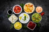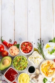 Sosów w białe miski na białe miski