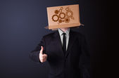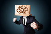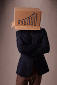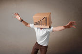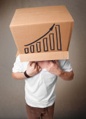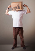 młody człowiek gestykulacji z kartonu na głowę z diagra