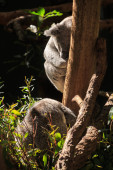 Mała panda (Ailurus fulgens), chodzenie na gałęzi w obudowie zoo