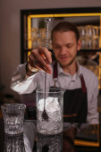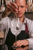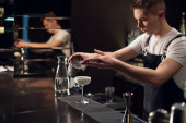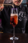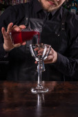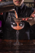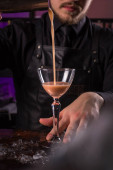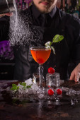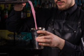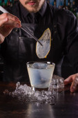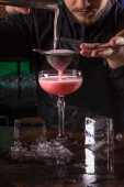 Barmani jest Dokonywanie Fitzgerald koktajl. Fitzgerald alkoholu koktajl na czarnym tle powierzchni