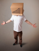 młody człowiek gestykulacji z kartonu na głowę z diagra