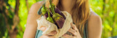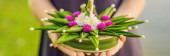 Młoda kobieta świętuje Loy Krathong, działa na wodzie. Loy Krathong festival, ludzie kupują kwiaty i świece światło i unosić się na wodzie z okazji festiwalu Loy Krathong w Tajlandii Banner, długo