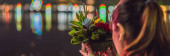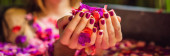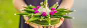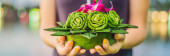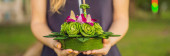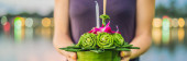 Młoda kobieta świętuje Loy Krathong, działa na wodzie. Loy Krathong festival, ludzie kupują kwiaty i świece światło i unosić się na wodzie z okazji festiwalu Loy Krathong w Tajlandii Banner, długo
