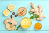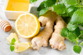 Zdjęcie "Widok z góry cytryna, imbir, mięta i płynnego miodu słoik z drewnianą łyżką na różowy tło wibrujący" może być wykorzystywane do celów osobistych i komercyjnych zgodnie z warunkami zakupionej licencji Royalty-free. Obraz jest dostępny do pobrania w jakości wysokiej rozdzielczości do 5760x3840.
