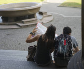 młody w szkole, studentów studiujących w bibliotece kolegium