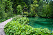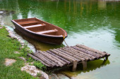 Łodzie nad jeziorem/kilka drewnianych łodzi na jeziorze