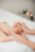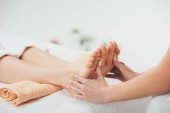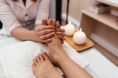 przycięte widok masażysta robi masaż stóp do dorosłego kobiety w spa