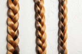 Plecione nitki na podłoże drewniane. Ideę dawstwa włosów