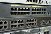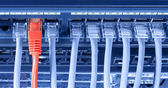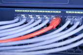 Informacje o technologii sieci komputerowej, telekomunikacyjne kable Ethernet podłączony do Internetu Switch, pojęcie centrum danych