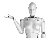 Android robot gospodarstwa puste znak