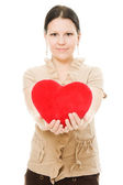 kobieta z darem serca w jej ręce