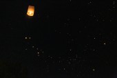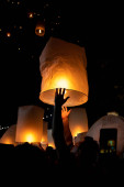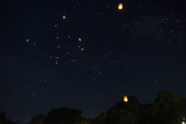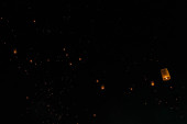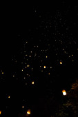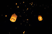 Loi Krathong i Yi Peng wydała papierowe latarnie na niebie w nocy