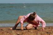 piękna dziewczyna w stylowe ubrania jasne, odpoczynek nad morzem w gorący letni dzień