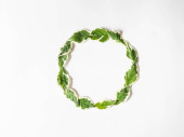 Widok z góry świeżych i organicznych bazylii na zielonym tle