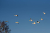 Zdjęcie "Grupa łabędzi latających nad jeziorem. "Lebedinyj" Łabędź natura R" może być wykorzystywane do celów osobistych i komercyjnych zgodnie z warunkami zakupionej licencji Royalty-free. Obraz jest dostępny do pobrania w jakości wysokiej rozdzielczości do 5760x3840.