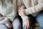 wykadrowany widok emerytowany mężczyzna i kobieta trzymając ręce