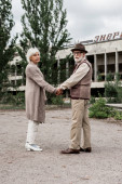 emerytowana para patrząc na okno stojąc w uszkodzonej klasie