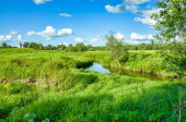 Zdjęcie "Słoneczny dzień, łąki i roślinność, Błękitne niebo. Rzeka peksha. Natura w lecie. Wieś aleksino w regionie Vladimir, Rosja" może być wykorzystywane do celów osobistych i komercyjnych zgodnie z warunkami zakupionej licencji Royalty-free. Obraz jest dostępny do pobrania w jakości wysokiej rozdzielczości do 5760x3840.