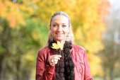 Zdjęcie "Szczęśliwy Ładna Blondynka teen ma na sobie sweter mody chodzenie w jesiennym parku z żółtymi liśćmi" może być wykorzystywane do celów osobistych i komercyjnych zgodnie z warunkami zakupionej licencji Royalty-free. Obraz jest dostępny do pobrania w jakości wysokiej rozdzielczości do 5760x3840.