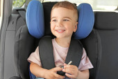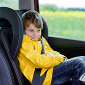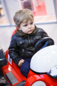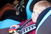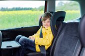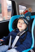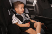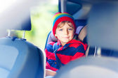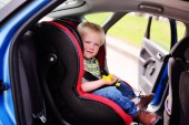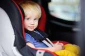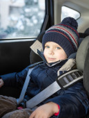 mały chłopiec siedzi w morze samochód bezpieczeństwa