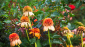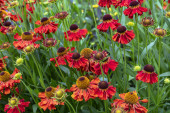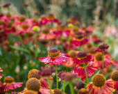 Kwietnik z purpurowym helem w jasnym jesiennym dniu w kwietniku