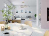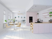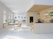 3D-ilustracja, Nowy apartament loft nowoczesnego miasta.