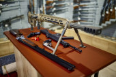Zdjęcie "Stary pistolet krzemowy w muzeum zamkowym, starożytna broń, Europa. Tradycyjna architektura europejska, słynne miejsca turystyki i podróży, dziedzictwo historyczne" może być wykorzystywane do celów osobistych i komercyjnych zgodnie z warunkami zakupionej licencji Royalty-free. Obraz jest dostępny do pobrania w jakości wysokiej rozdzielczości do 5760x3840.