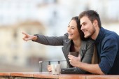 Zdjęcie "Szczęśliwa para mówi trzymając kubki na balkonie" może być wykorzystywane do celów osobistych i komercyjnych zgodnie z warunkami zakupionej licencji Royalty-free. Obraz jest dostępny do pobrania w jakości wysokiej rozdzielczości do 5760x3840.