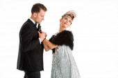 Zdjęcie "widok z boku pompatyczny mężczyzna i kobieta trzymając się za ręce podczas stojąc izolować don biały " może być wykorzystywane do celów osobistych i komercyjnych zgodnie z warunkami zakupionej licencji Royalty-free. Obraz jest dostępny do pobrania w jakości wysokiej rozdzielczości do 5760x3840.