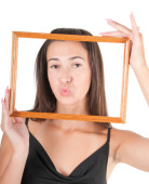 Zdjęcie "kobieta z ramą" może być wykorzystywane do celów osobistych i komercyjnych zgodnie z warunkami zakupionej licencji Royalty-free. Obraz jest dostępny do pobrania w jakości wysokiej rozdzielczości do 5760x3840.