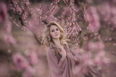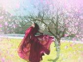 Zdjęcie "Kwitnąca wiosna rozprzestrzenia swój zapach wszędzie. Słodka dziewczyna w pelerynie stoi pod drzewem sakura" może być wykorzystywane do celów osobistych i komercyjnych zgodnie z warunkami zakupionej licencji Royalty-free. Obraz jest dostępny do pobrania w jakości wysokiej rozdzielczości do 5760x3840.