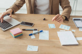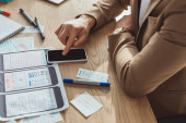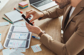 Widok projektanta ux pracującego z prototypem aplikacji mobilnej przy stole