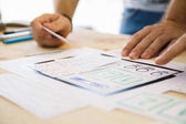 Widok upraw ux dewelopera pracującego ze szkicami aplikacji na stole