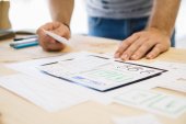 Zdjęcie "Widok upraw ux dewelopera pracującego ze szkicami aplikacji na stole" może być wykorzystywane do celów osobistych i komercyjnych zgodnie z warunkami zakupionej licencji Royalty-free. Obraz jest dostępny do pobrania w jakości wysokiej rozdzielczości do 5760x3840.