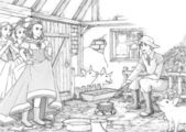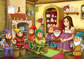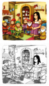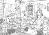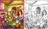 kolorowanki szkic, "Królewna Śnieżka i siedmiu krasnoludków"