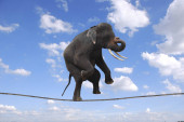 Zdjęcie "Słoń akrobata chodzący po drucie" może być wykorzystywane do celów osobistych i komercyjnych zgodnie z warunkami zakupionej licencji Royalty-free. Obraz jest dostępny do pobrania w jakości wysokiej rozdzielczości do 5760x3840.