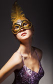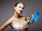 atrakcyjny piękna młoda kobieta nosi czerwony karnawał maska