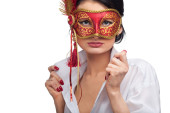 piękne kobiety na sobie niebieski karnawałowe maski