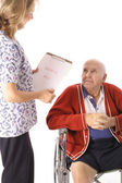Sprawdzanie osób starszych pacjentów na białym tle pielęgniarka