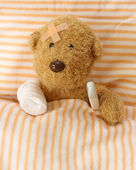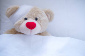chory Miś z szkody w łóżku