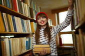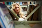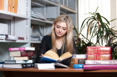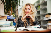 Zdjęcie "Młoda piękna blondynka w bibliotece" może być wykorzystywane do celów osobistych i komercyjnych zgodnie z warunkami zakupionej licencji Royalty-free. Obraz jest dostępny do pobrania w jakości wysokiej rozdzielczości do 5760x3840.