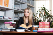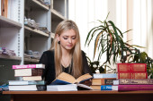 Zdjęcie "Młoda piękna blondynka w bibliotece" może być wykorzystywane do celów osobistych i komercyjnych zgodnie z warunkami zakupionej licencji Royalty-free. Obraz jest dostępny do pobrania w jakości wysokiej rozdzielczości do 5760x3840.
