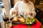 Zdjęcie "Widok kobiety jedzącej omlet w kawiarni" może być wykorzystywane do celów osobistych i komercyjnych zgodnie z warunkami zakupionej licencji Royalty-free. Obraz jest dostępny do pobrania w jakości wysokiej rozdzielczości do 5760x3840.