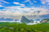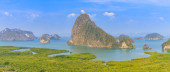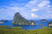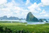 Piękny widok Samet Nangshe nad zatoką Phnag-nga malownicze, z lasów namorzynowych i gór w Andaman morza, w pobliżu Phuket, Tajlandia