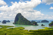 Zdjęcie "Piękny widok Samet Nangshe nad zatoką Phnag-nga malownicze, z lasów namorzynowych i gór w Andaman morza, w pobliżu Phuket, Tajlandia" może być wykorzystywane do celów osobistych i komercyjnych zgodnie z warunkami zakupionej licencji Royalty-free. Obraz jest dostępny do pobrania w jakości wysokiej rozdzielczości do 5760x3840.