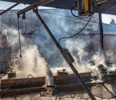 Fabryka Rum w Porto da Cruz na wybrzeżu wschodniej Madery na Maderze w Portugalii. Portugalia, Madera, kwiecień 2018