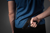 Zdjęcie "Zamaskowany mężczyzna w kapturze z bronią w ręku na czarnym tle. miejsce na tekst na szarym tle" może być wykorzystywane do celów osobistych i komercyjnych zgodnie z warunkami zakupionej licencji Royalty-free. Obraz jest dostępny do pobrania w jakości wysokiej rozdzielczości do 5760x3840.
