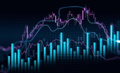 Świecący rozmyty finansowy wykres cyfrowy z tendencją wzrostową. Koncepcja wzrostu, sukcesu i giełdy. 3d renderowanie