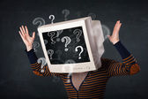 Zdjęcie "Biznesmen z głowicą monitora i znakami zapytania" może być wykorzystywane do celów osobistych i komercyjnych zgodnie z warunkami zakupionej licencji Royalty-free. Obraz jest dostępny do pobrania w jakości wysokiej rozdzielczości do 5760x3840.